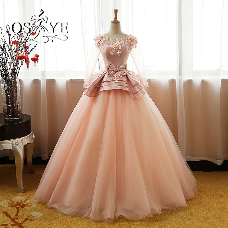 • Vintage Flower Long Sleeves Puffy Tulle Long Prom Dresses,Quinceanera Dresses OK608