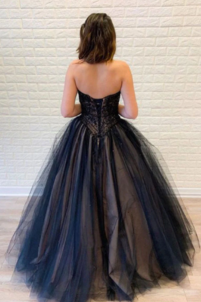 Ball Gown Strapless Lace Up Back Black Lace Appliques Prom Dress Sweet 16 Dress OKT62