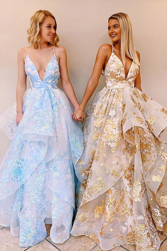 Elegant A-line Spaghetti Straps Layers Long Prom Dress OKT51