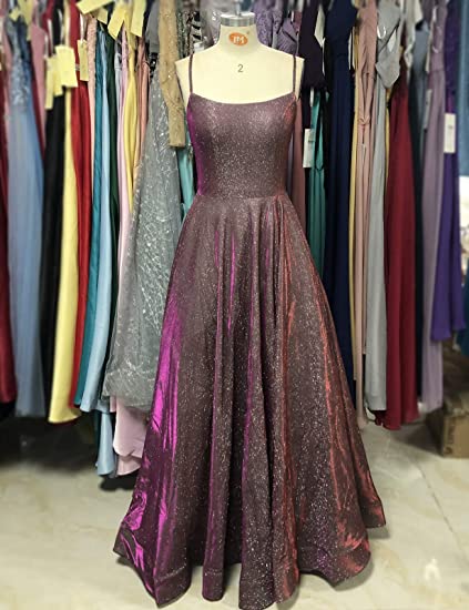 Chic Spaghetti Straps Long A-line Prom Dress with Pockets Formal Evening Dress OKY43