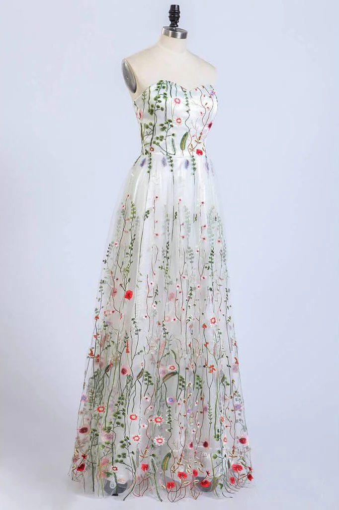Appliqued See-Through Ivory Backless Long Prom Dresses OKL95