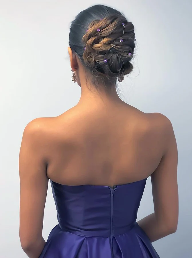 A-Line Sweetheart Ankle-Length Ombre Purple Satin Prom Dresses with Pleats OKL90