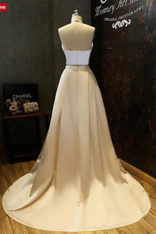 Simple Two-Piece Gold Halter Long Prom Evening Dresses With White Top OK600
