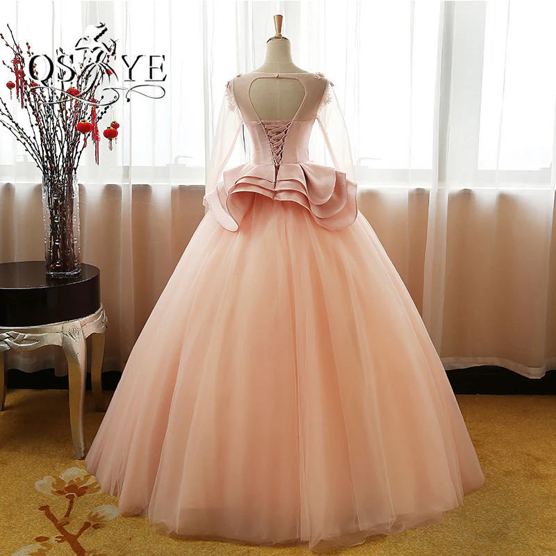 Vintage Flower Long Sleeves Puffy Tulle Long Prom Dresses,Quinceanera Dresses OK608