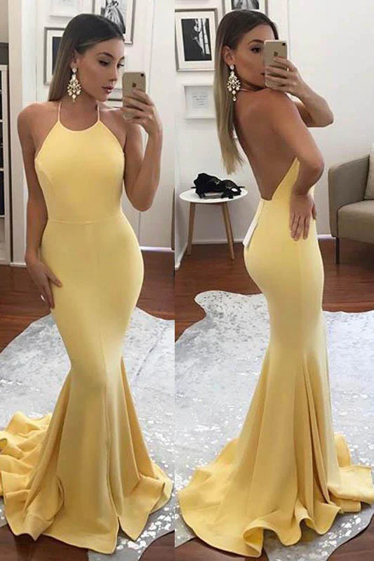 Fashion Halter Yellow Mermaid Sexy Backless Long Prom Dress,Formal Evening Dresses OK645