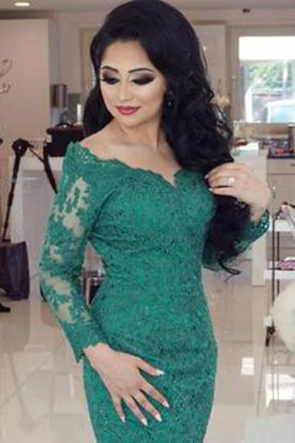 Elegant Long Sleeves V-neck Green Lace Mermaid Prom Dress New OK667
