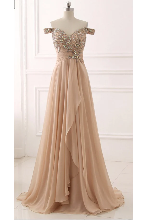 Chiffon Sweetheart Off Shoulder Beaded Pleated Long Prom Dress New OK626